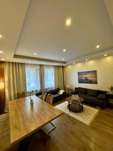 Questo moderno appartamento dispone di una camera da letto separata con tre letti e un soggiorno. La cucina completamente attrezzata è dotata di piano cottura, frigorifero, lavastoviglie, forno oltre ad angolo cottura con bollitore elettrico e macchina per il caffè. Un tavolo da pranzo completa l’area cucina. Gli ospiti possono usufruire del riscaldamento, asciugamani e biancheria da letto forniti, lavatrice per maggiore comodità, area salotto nonché opzioni come culla o seggiolone per bambini.
