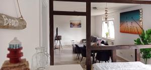 El apartamento consta de una sala de estar, dos dormitorios separados con un total de siete camas y un baño equipado con bañera y ducha. Los huéspedes disponen en la habitación de TV pantalla plana con servicios en streaming y canales satelitales, calefacción, tendedero para ropa con plancha, almohadas sin plumas, toallas y ropa de cama. La cocina americana está completamente equipada e incluye horno, placa vitrocerámica, frigorífico, lavavajillas, microondas además de facilidades para preparar té y café como hervidor eléctrico y cafetera.