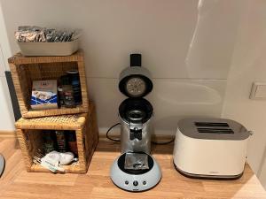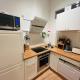 Tento apartmán s jednou ložnicí disponuje plně vybavenou kuchyní se sklokeramickou varnou deskou, troubou, lednicí, myčkou nádobí, mikrovlnnou troubou, toustovačem i kávovarem spolu s možnostmi přípravy čaje a kávy. Obývací část zahrnuje pohovku, posezení na dřevěné podlaze a jídelní stůl. Pro pohodlí hostů je připraveno také žehlička s žehlicím prknem a sušák na prádlo.