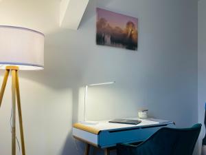 The apartment features one bedroom with two beds along with a separate living room area. The fully equipped kitchen contains an oven, microwave, stovetop, refrigerator, toaster, coffee machine including Nespresso facilities as well as tea and coffee making amenities. A washing machine and tumble dryer are provided for convenience. Additional in-room extras include hardwood flooring, heating, ironing facilities with iron and ironing board, clothes drying rack, work desk seating area with sofa bed options,