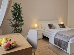 Plně vybavená kuchyň zahrnuje moderní spotřebiče jako varnou desku, lednici, myčku nádobí, mikrovlnnou troubu i kuchyňský kout s rychlovarnou konvicí a kávovarem. Dalšími vychytávkami jsou jídelní stůl s dětskou židlí a kuchyňské nádobí. Bezpečnost zajišťují hasicí přístroj umístěný v apartmánu a detektory kouře.